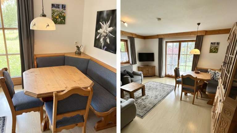 Die Apartments im Hotel Haus Am Wiesbach sind im traditionellen bayerischen Stil eingerichtet und bieten eine gemütliche Atmosphäre. Jedes Apartment verfügt über ein separates Schlafzimmer, eine voll ausgestattete Küche mit Geschirrspüler und einen Essbereich. Zur Ausstattung gehören auch ein Kabel-TV und kostenfreies WLAN. Genießen Sie die malerische Aussicht auf die umliegenden Berge.
