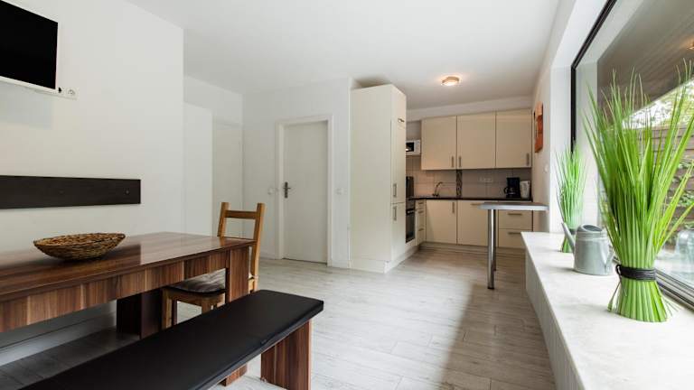 Das Hotel bietet keine Verpflegung, aber in der voll ausgestatteten Küche können Gäste ihre eigenen Mahlzeiten zubereiten. Alternativ gibt es in der Umgebung viele Restaurants und Cafés, in denen Sie lokale und internationale Küche genießen können.