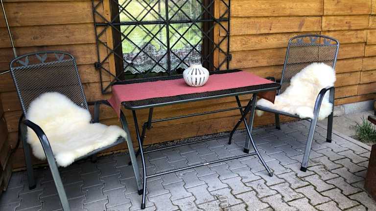 Das Ferienhaus besteht aus einem Schlafzimmer, einem Wohnzimmer sowie einer voll ausgestatteten Küchenzeile mit Kühlschrank und Kaffeemaschine. Es enthält außerdem ein Badezimmer mit Dusche und Haartrockner. Handtücher und Bettwäsche werden zur Verfügung gestellt. Es bietet Nichtraucherzimmer und Gartenmöbel.