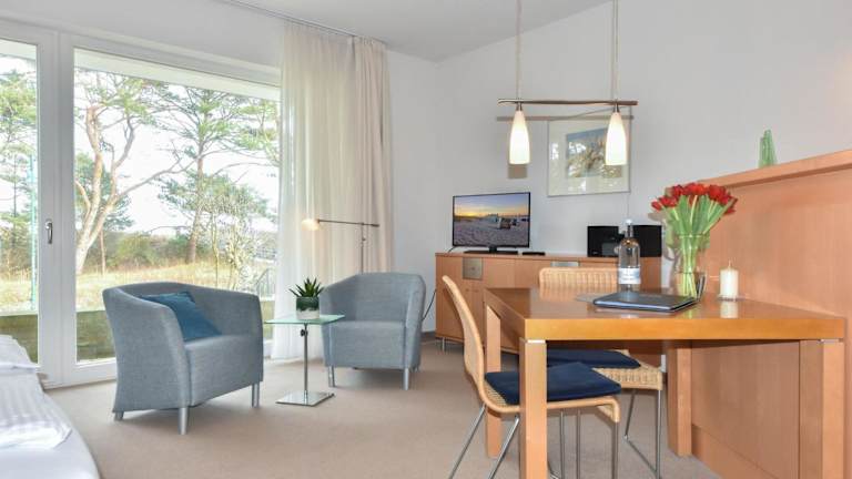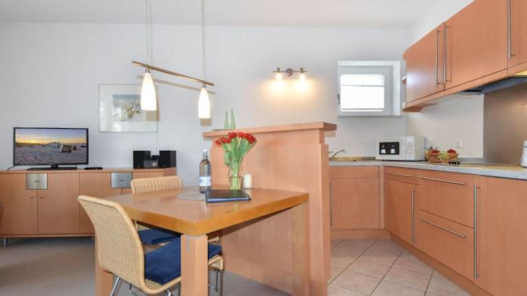 Die Ferienwohnung im Erdgeschoss verfügt über 1 Schlafzimmer, einen Fernseher und eine voll ausgestattete Küche. Die Küche ist mit einem Kühlschrank, Geschirrspüler, Waschmaschine, Mikrowelle und Herdplatte ausgestattet. Handtücher und Bettwäsche sind ebenfalls vorhanden.