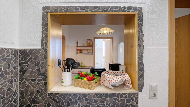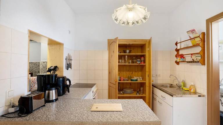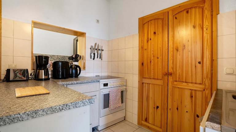Die Ferienwohnung verfügt über eine voll ausgestattete Küche, die einen Kühlschrank und eine Kaffeemaschine umfasst. Eine Verpflegungsmöglichkeit ist durch die Selbstverpflegung gegeben.