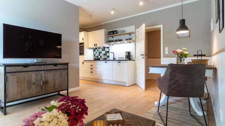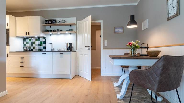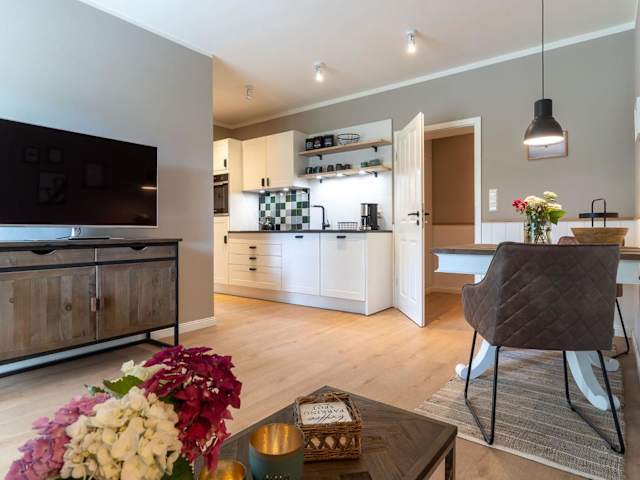 Das Apartment im Haus Böhl Haus Böhl Mette - 9 befindet sich im Erdgeschoss und verfügt über ein gemütliches Schlafzimmer. Zur Ausstattung gehören ein TV und eine voll ausgestattete Küche mit Kühlschrank, Backofen, Waschmaschine, Geschirrspüler und Kochfeld. Hier können Sie sich wie zu Hause fühlen und Ihre Mahlzeiten selbst zubereiten.