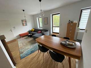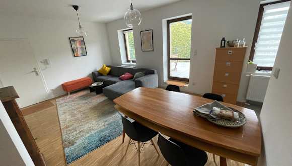 Die Ferienwohnung umfasst zwei Schlafzimmer, ein Wohnzimmer sowie ein Badezimmer mit Badewanne oder Dusche. Der Balkon ergänzt den Wohnraum und ermöglicht einen Ausblick auf die umliegende Landschaft.