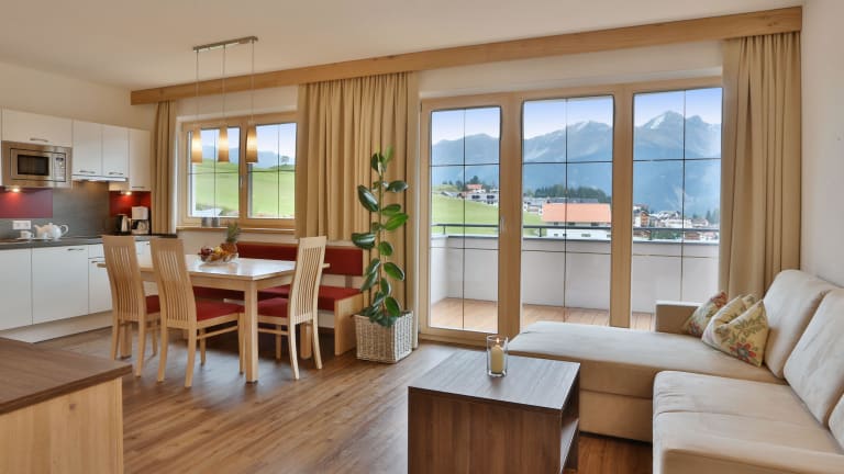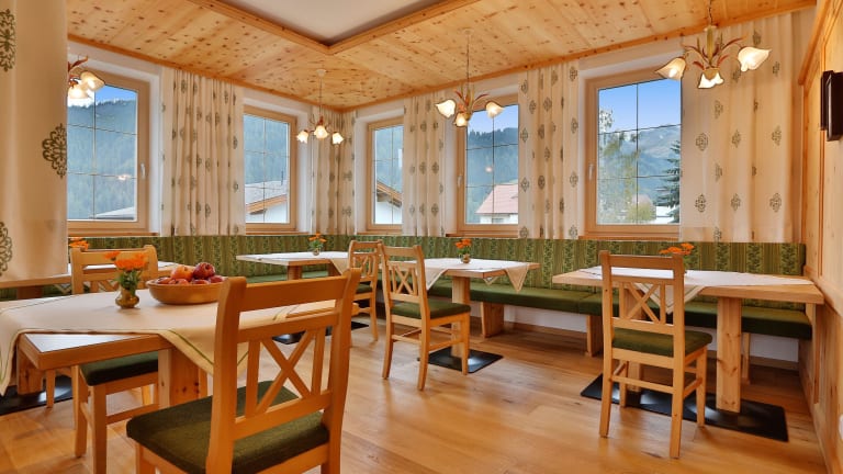 Beginnen Sie den Tag bei einem reichhaltigen Frühstück im gemütlichen, mit Zirbenholz ausgestatteten Frühstücksraum und genießen Sie den Ausblick auf die umliegende Bergwelt. Alternativ bieten wir den Gästen in unseren Apartments frische Brötchen auf Bestellung an.