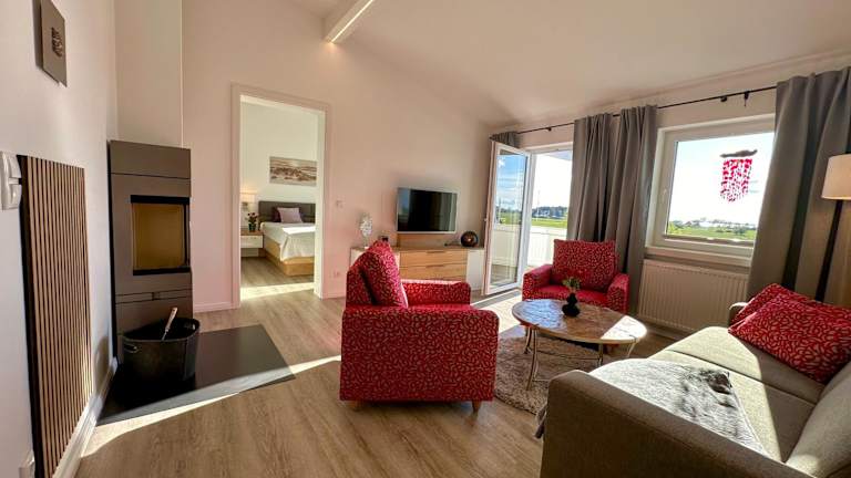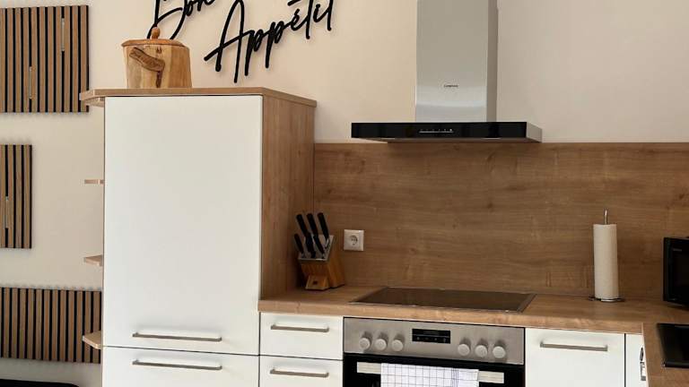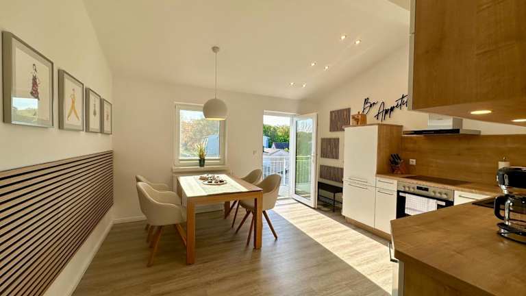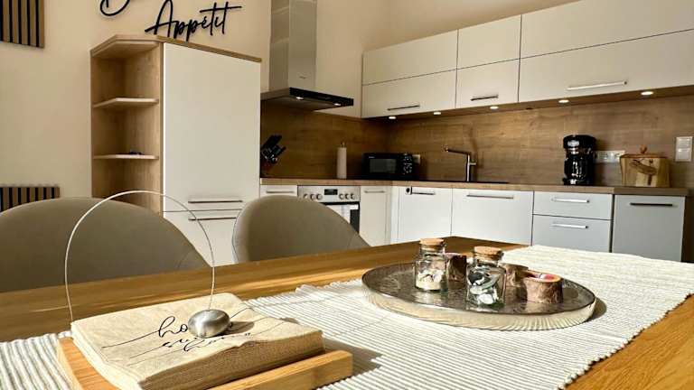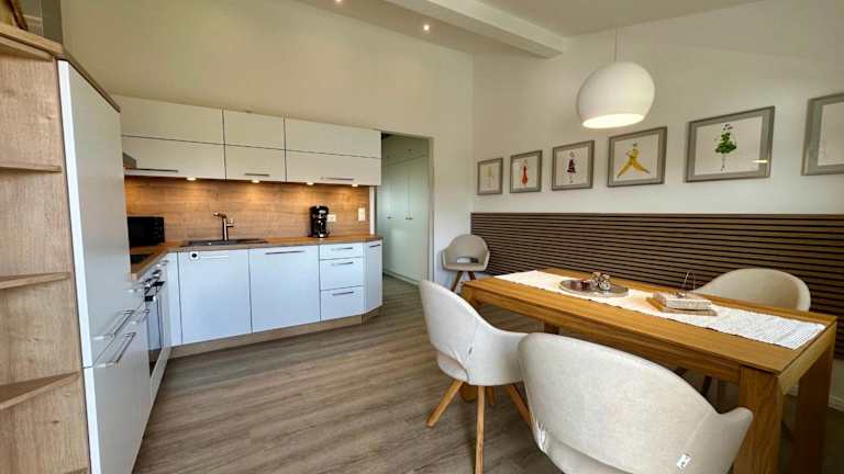 Die Ferienwohnung umfasst zwei Schlafzimmer sowie eine voll ausgestattete Küche mit Kühlschrank, Geschirrspüler und Wasserkocher. Zudem steht den Gästen ein Balkon zur Verfügung, und die Wohnung ist mit einem TV mit Kabelkanälen ausgestattet.