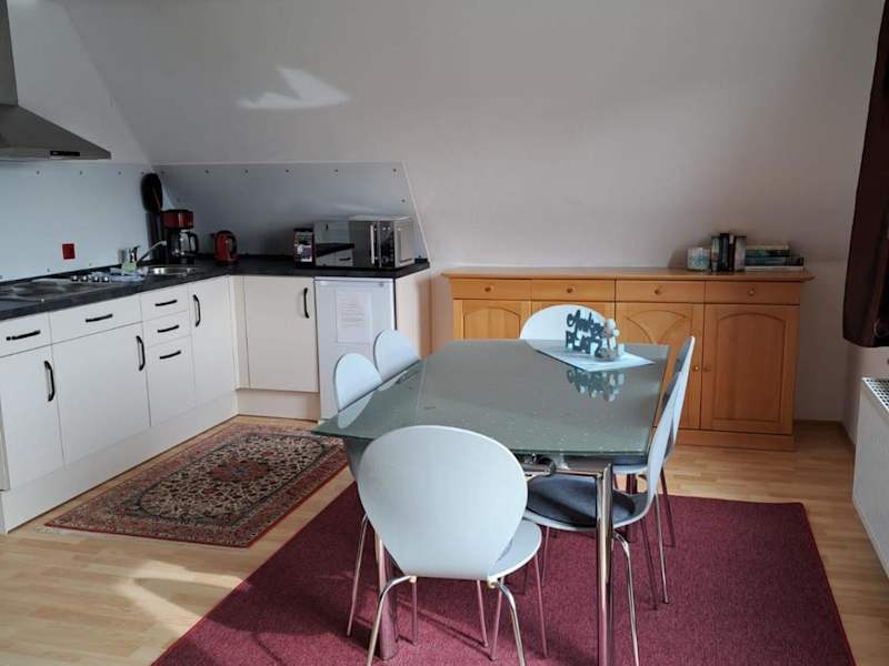 Das Apartment im Haus Dreimaster Erdgeschoß verfügt über ein gemütliches Schlafzimmer, ein Wohnzimmer mit einem Flachbild-Sat-TV und eine voll ausgestattete Küche mit einem Kühlschrank und einem Geschirrspüler. Das moderne Badezimmer ist mit einer Dusche ausgestattet. Handtücher und Bettwäsche können gegen Aufpreis zur Verfügung gestellt werden.