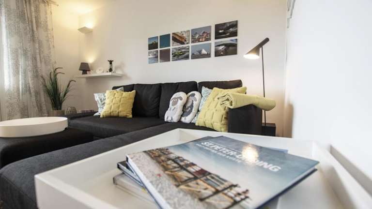 Die Wohnung besteht aus einem Schlafzimmer, einem Wohnzimmer mit Essbereich, einer Küchenzeile, die mit einem Kühlschrank, Geschirrspüler und Ofen ausgestattet ist, sowie einem Badezimmer mit Dusche. Handtücher und Bettwäsche werden bereitgestellt. Besonderheiten sind ein Blu-ray-Player sowie die Bereitstellung eines Aufzugs.