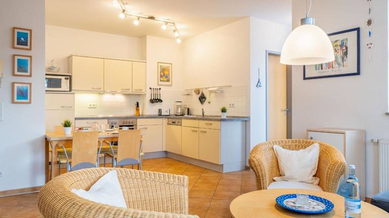 Haus Dünenwald 06 - Auf der Düne ist eine Ferienwohnung, die in einem ruhigen und schönen Umfeld untergebracht ist. Die Unterkunft bietet ihren Gästen Zugang zu einem Balkon und einem kostenlosen Privatparkplatz. Sie ist für Gäste ab einem Mindestalter von 18 Jahren buchbar und erlaubt keine Feiern wie Junggesellenabschiede. Handtücher und Bettwäsche werden bereitgestellt. Haustiere sind erlaubt, möglicherweise fallen jedoch Gebühren an. Es wird eine Zahlung per Überweisung vor der Anreise benötigt.