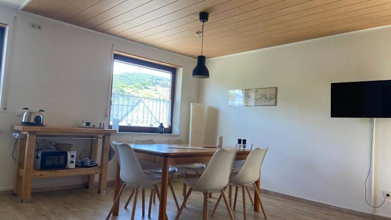 Das Haus Erika in Kattenes ist eine gemütliche und gut ausgestattete Unterkunft, die Ihnen einen herrlichen Blick auf die Burg Thurant, die Mosel und die Weinberge bietet. Hier können Sie sich in einer entspannten Atmosphäre wohlfühlen und die Natur genießen. Die Wohnung verfügt über einen eigenen Sitz- und Essbereich sowie eine gut ausgestattete Küche, in der Sie Ihre Mahlzeiten selbst zubereiten können. Grillmöglichkeiten und eine Terrasse stehen Ihnen ebenfalls zur Verfügung. Die Umgebung bietet zahlreiche Möglichkeiten zum Wandern, Radfahren und Angeln.