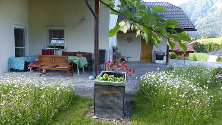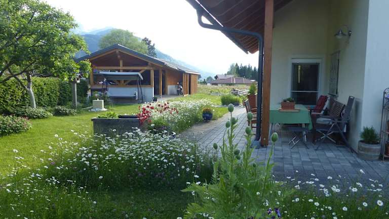 Die Ferienwohnung verfügt über ein Schlafzimmer, ein Wohnzimmer sowie eine gut ausgestattete Küche mit Kühlschrank und Ofen. Ein Badezimmer mit Dusche ist ebenfalls vorhanden. Zur Ausstattung gehören eine Terrasse mit Bergblick sowie ein Flachbild-TV. Handtücher und Bettwäsche werden bereitgestellt.