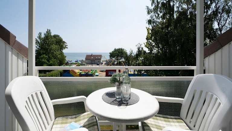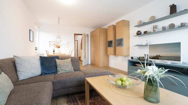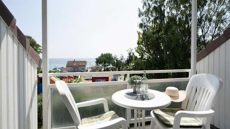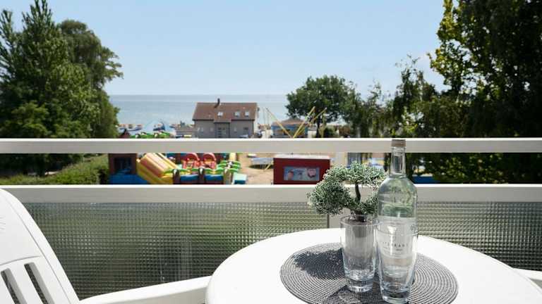 Haus Fernsicht Wohnung 18-M ist eine Ferienwohnung mit Meerblick, die für einen komfortablen Aufenthalt ausgestattet ist. Die Unterkunft bietet einen Balkon sowie einen kostenlosen Privatparkplatz.
