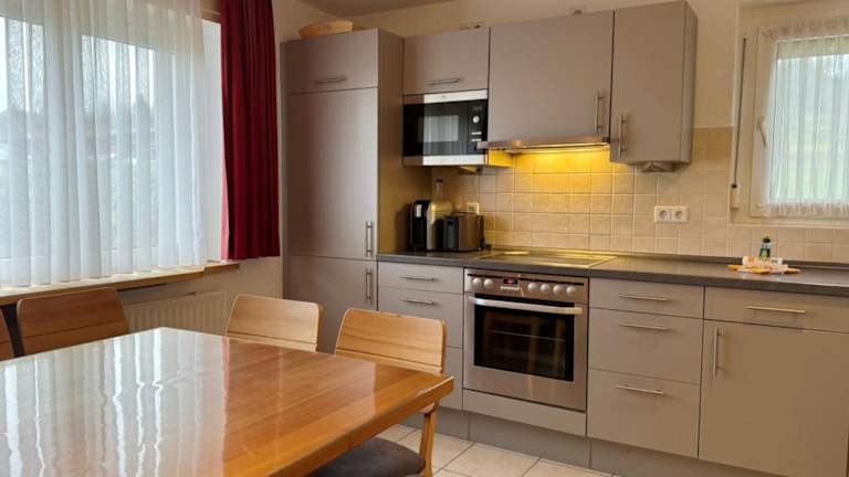 Die voll ausgestattete Küche ermöglicht den Gästen die Selbstversorgung, die Gemeinschaftsküche bietet weitere Kochmöglichkeiten.