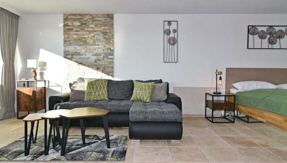Die Wohnung beinhaltet ein Wohnzimmer und einen Fernseher. Die vollständige Ausstattung der Küchenzeile ermöglicht ein unabhängiges Wohnen. Es handelt sich um eine Nichtraucherunterkunft, sowohl in privaten als auch in öffentlichen Bereichen.