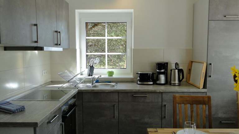 Das Ferienhaus verfügt über zwei Schlafzimmer und eine voll ausgestattete Küche. In der Küche sind ein Geschirrspüler und ein Ofen vorhanden. Das Badezimmer ist mit einer Dusche und einem Haartrockner ausgestattet. Handtücher und Bettwäsche werden bereitgestellt.