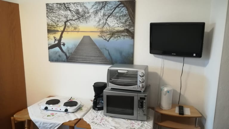 Die Zimmer sind Möbliert, die Betten sind bezogen und es stehen Stühle, ein Tisch und ein Schrank bereit, damit die Gäste einen längeren Aufenthalt haben Das Haus fokusiert sich auf Mieter und Langzeitmieter Eine komplett eingerichtetet Gemeinschaftsküche steht zur Verfügung Die Bäder sind mit Handtüchern und Pflegeutensilien ausgestattet Im Haus steht kostenfreies WLAN zur Verfügung Der kostenfreie Parkplatz befindet sich gegenüber dem Haus