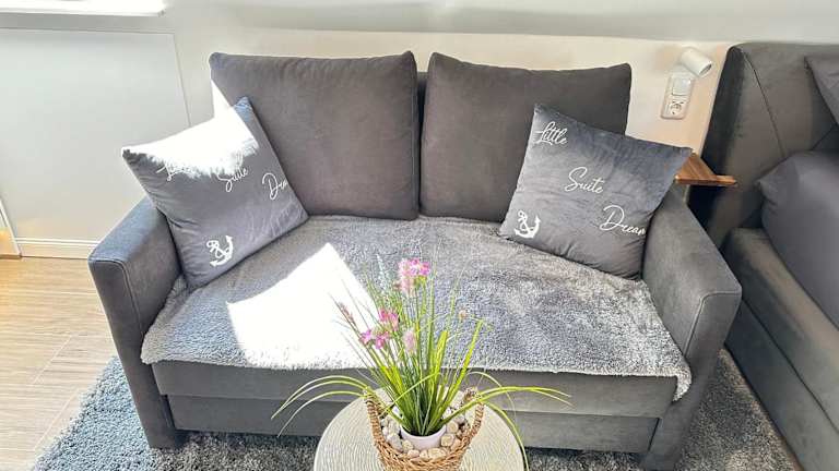 Die Ferienwohnung ist ausgestattet mit einem Wohnzimmer und einer voll ausgestatteten Küche, die über einen Kühlschrank und einen Geschirrspüler verfügt. Ein TV ist ebenfalls vorhanden. Bettwäsche und Handtücher sind nicht im Zimmerpreis inbegriffen, können jedoch gegen eine zusätzliche Gebühr von 30 EUR pro Person für den Aufenthalt gemietet werden.