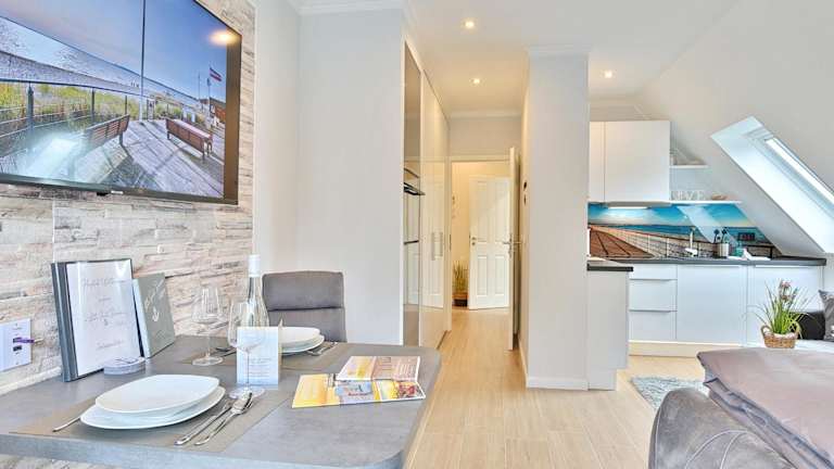 Die Unterkunft Haus im Breitenkamp Little Suite Dream Haffkrug Appartement 6 bietet moderne Annehmlichkeiten und umfasst ein Wohnzimmer sowie eine voll ausgestattete Küche. Zur Ausstattung gehört ein Balkon, und es stehen kostenlose Parkplätze und WLAN zur Verfügung. Es handelt sich um eine Nichtraucherunterkunft.