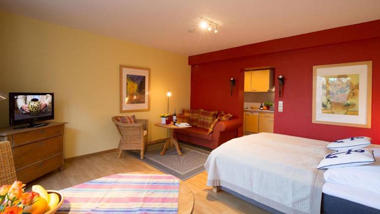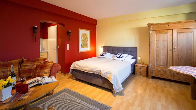 Die Ferienwohnung verfügt über ein Schlafzimmer und ist mit einer Küche ausgestattet, die über einen Kühlschrank und einen Geschirrspüler verfügt. Das Badezimmer ist mit einer Dusche, einem Haartrockner und einer Waschmaschine ausgestattet. Handtücher und Bettwäsche werden bereitgestellt. Die Unterkunft ist eine Nichtraucherunterkunft.