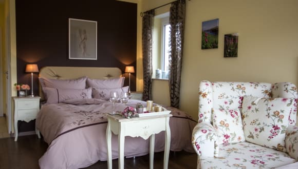 Umschlossen vom Landschaftsschutzgebiet liegt Anhausen auf einem kleinen Bergrücken. Auf seiner Südseite haben wir für Sie unser B&B, ein kleines Hotel, gebaut. Modern und individuell sind unsere Zimmer für Sie gestaltet und es findet sich für jeden Geschmack das passende Ambiente. Rosengarten, Balkon, Terrasse oder Sitzplatz am Teich, wählen Sie Ihren Lieblingsplatz in oder über unserem Englischen Garten. Wir, das Team von Haus Kallenberg und die Landschaft, verwöhnen hier all Ihre Sinne. Kommen Sie zum Ausspannen, Erholen und Genießen, Wandern und Radfahren in die Heidenheimer Brenzregion. Sie finden das alles im und in unmittelbarer Nähe von Haus Kallenberg. Die Schwäbische Alb mit Ihren wunderbaren Landschaften und Haus Kallenberg, direkt am Eingang zum "Eselsburger Tal", sind zu jeder Jahreszeit eine Reise wert. Eine Kulturlandschaft und Kultur mit den Opernfestspielen in Heidenheim, die ältesten Kunstwerke der Menschheit mit Mammut und Löwenmensch, die Römer und der Limes, Teddybären von Steiff in Giengen, Ulm mit seinem Münster, das LEGO-Land Deutschland und vieles mehr können Sie von Haus Kallenberg aus auf kurzen Wegen erreichen und erleben. Im Haus Kallenberg - Träumen und Wohlfühlen - servieren wir Ihnen zum Frühstück leckere handgemachte Marmeladen aus den Früchten des Gartens, und regionale Produkte. Genießen Sie unser persönlich auf Ihre Wünsche abgestimmtes Frühstück mit einem traumhaften Blick ins Eselsburger Tal.