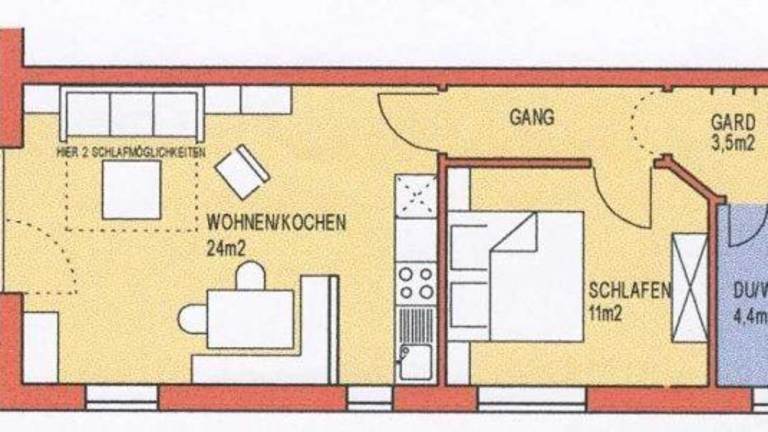 Die Ferienwohnung verfügt über 1 Schlafzimmer, ein Wohnzimmer mit TV, eine voll ausgestattete Küchenzeile mit Kühlschrank und Ofen sowie 1 Badezimmer mit Dusche. Handtücher und Bettwäsche werden bereitgestellt.