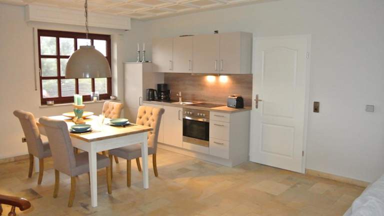 Die Apartments im Haus Kranenborgh im Mühlenspiegel Steinhude am Meer sind gemütlich und gut ausgestattet. Sie verfügen über eine Terrasse mit Blick auf den Garten, einen komfortablen Sitzbereich und einen Flachbild-Sat-TV. Die voll ausgestattete Küche enthält einen Kühlschrank, einen Geschirrspüler, einen Backofen, ein Kochfeld, einen Toaster, eine Kaffeemaschine und einen Wasserkocher. Das private Badezimmer ist mit einer Dusche und einem Haartrockner ausgestattet.