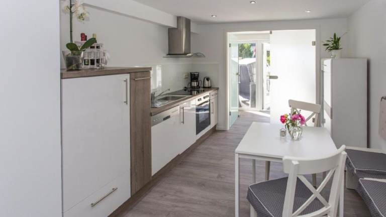 Die Ferienwohnung verfügt über ein Schlafzimmer, einen Flachbild-TV sowie eine gut ausgestattete Küchenzeile, die mit einem Kühlschrank und einem Geschirrspüler ausgestattet ist. Zudem bietet die Unterkunft ein Badezimmer mit einer Dusche.