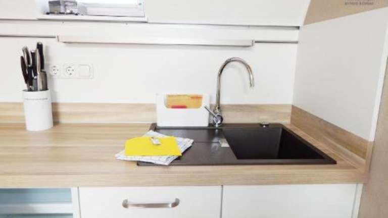 Die Ferienwohnung umfasst ein Schlafzimmer, ein Wohnzimmer, ein Badezimmer mit Dusche sowie eine gut ausgestattete Küche mit Kühlschrank und Geschirrspüler. Zudem steht ein Balkon zur Verfügung, der einen Blick auf das Meer bietet. Es sind Nichtraucherzimmer und allergikerfreundliche Zimmer verfügbar.