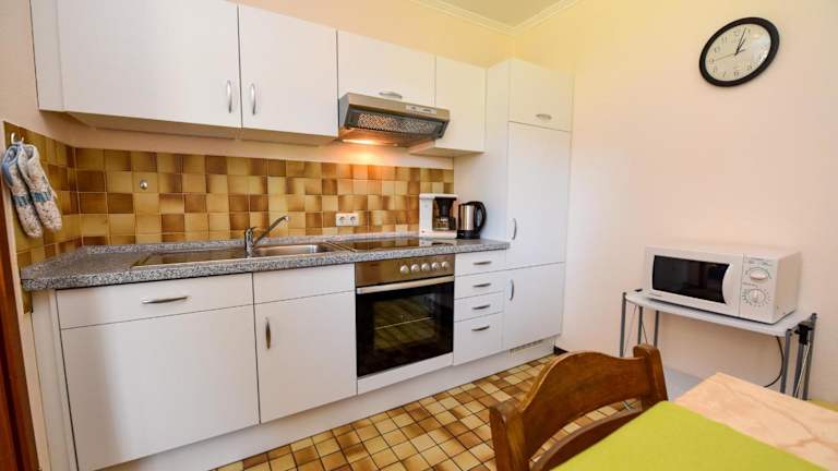 Die Ferienwohnung ist mit einem Wohnzimmer und einer voll ausgestatteten Küche, die einen Kühlschrank und einen Geschirrspüler umfasst, ausgestattet. Die Unterkunft verfügt zudem über einen Fernseher. Bettwäsche und Handtücher sind im Preis nicht inbegriffen, können jedoch gegen eine zusätzliche Gebühr bei der Agentur angemietet werden.