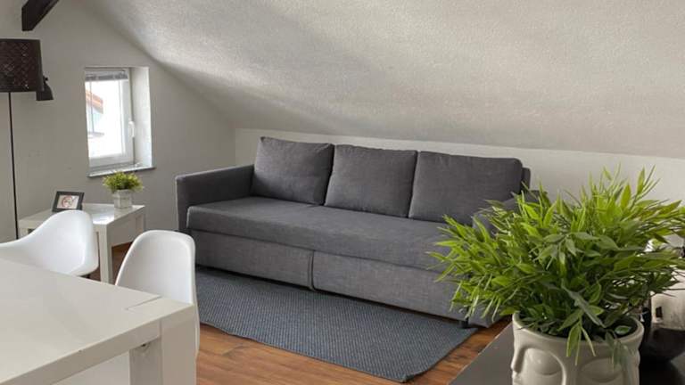 Die Ferienwohnung umfasst ein Schlafzimmer sowie ein Wohnzimmer, das mit einem Flachbild-TV ausgestattet ist. Die voll ausgestattete Küche beinhaltet einen Kühlschrank und einen Geschirrspüler. Das Badezimmer ist mit einem Haartrockner ausgestattet. Die Zimmer sind modern und funktional eingerichtet.
