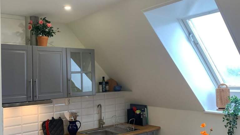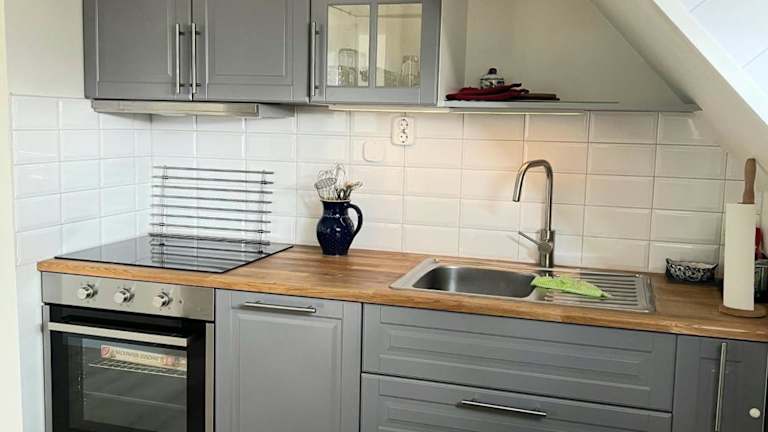 Die Wohnung verfügt über eine voll ausgestattete Küche, die unter anderem mit einem Kühlschrank und einem Geschirrspüler ausgestattet ist. Somit haben die Gäste die Möglichkeit, ihre eigenen Mahlzeiten zuzubereiten. Es sind keine weiteren Verpflegungsmöglichkeiten angegeben.