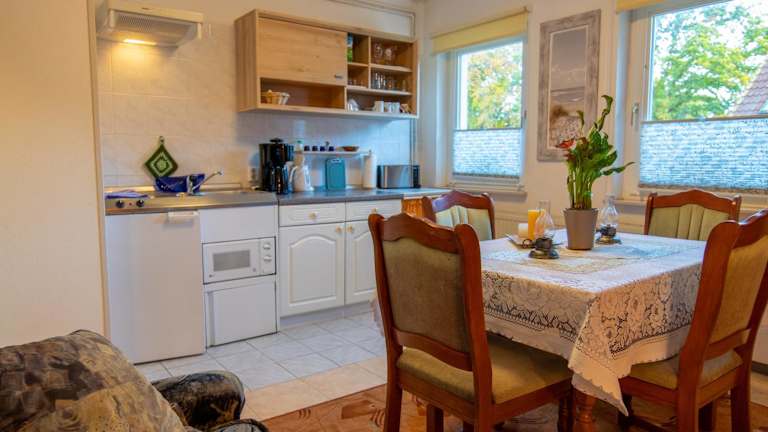 Die Zimmer in der Unterkunft Haus Parchow verfügen über einen Sitzbereich und sind mit einer voll ausgestatteten Küche ausgestattet. Jedes Zimmer bietet ein eigenes Badezimmer mit Dusche. Eine Herdplatte, ein Kühlschrank, eine Mikrowelle und ein Wasserkocher sind Teil der Ausstattung.