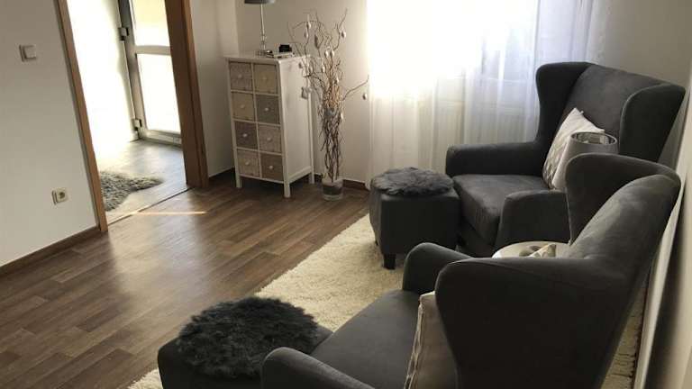 Die Ferienwohnung umfasst 1 Schlafzimmer, ein Wohnzimmer und eine komplett ausgestattete Küche mit Kühlschrank und Kaffeemaschine. Des Weiteren stehen ein Badezimmer mit Dusche und Haartrockner sowie Handtücher und Bettwäsche zur Verfügung.