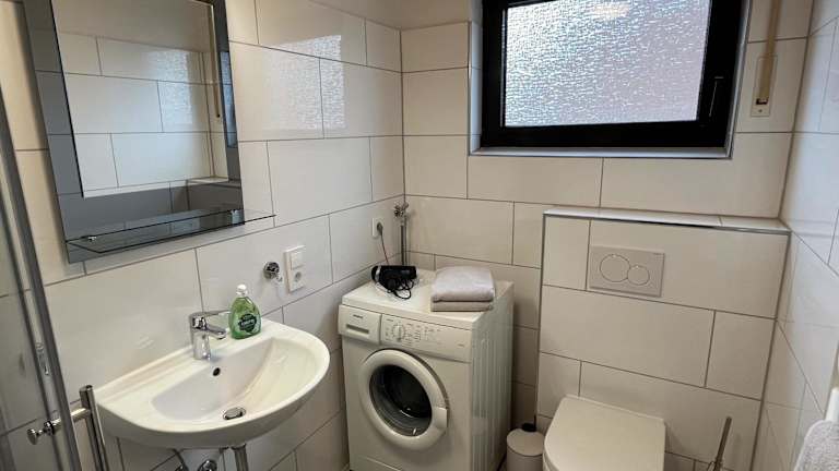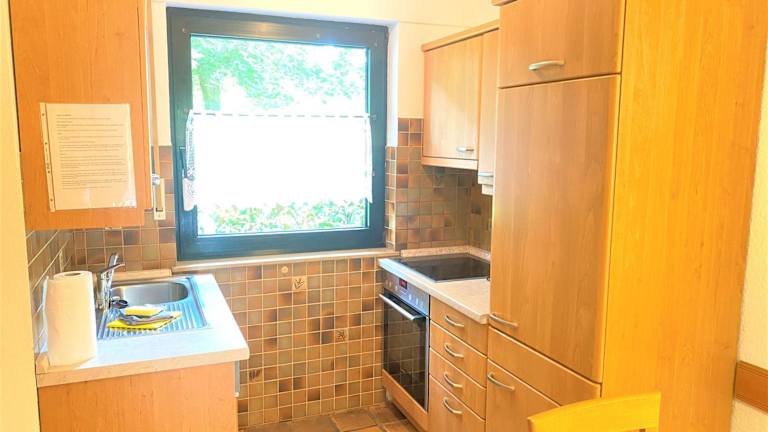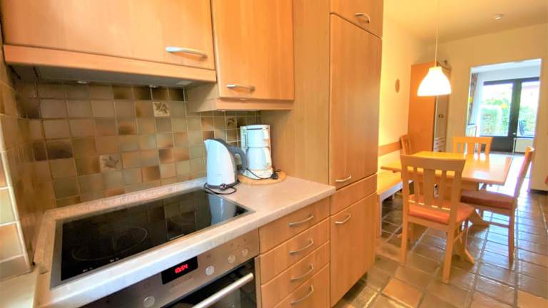Die Unterkunft umfasst eine voll ausgestattete Küche mit Kühlschrank, Geschirrspüler, Waschmaschine, Ofen und Mikrowelle, die Den Gästen eine eigenständige Verpflegung ermöglicht.