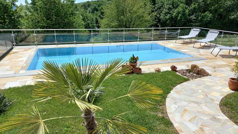 Haus Sylvia ist eine Ferienwohnung, die eine Terrasse und einen eigenen Pool bietet. Sie verfügt außerdem über einen Garten und kostenlosen Privatparkplatz.
