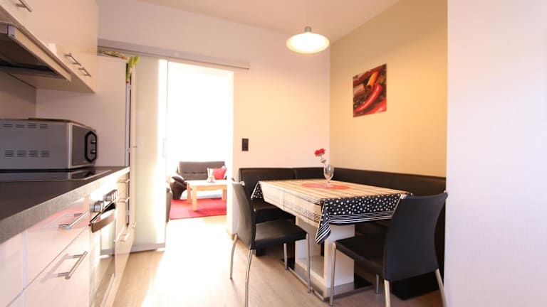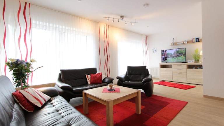 Die Zimmer im Haus Tina Meisenweg 11a sind mit drei Schlafzimmern ausgestattet. Zu den Annehmlichkeiten gehören eine voll ausgestattete Küche, ein Badezimmer mit moderner Ausstattung sowie ein Wohnbereich mit Flachbild-TV.