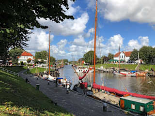 Die Unterkunft Haus Up't Land befindet sich in Carolinensiel, nur 2,8 km vom Strand Harlesiel entfernt. Das Deutsche Sielhafenmuseum ist in einer Entfernung von 1,2 km erreichbar. Der nächstgelegene Flughafen ist der Flughafen Bremen, der sich 119 km von der Unterkunft befindet.