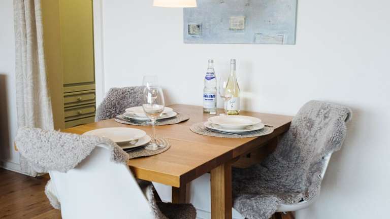 Die Ferienwohnung befindet sich in Westerland, nur 300 m vom Strand entfernt. In der näheren Umgebung finden sich das Freizeitbad Sylter Welle in 400 m Entfernung sowie der Bahnhof Westerland, der sich 1,1 km von der Unterkunft befindet. Weitere Attraktionen sind der Tierpark Tinnum in 3,6 km und der Golfclub Sylt in 5 km Entfernung. Der Sylt Aquarium ist 1,4 km entfernt, und der nächste Flughafen, der Flughafen Sylt, liegt 2 km entfernt.