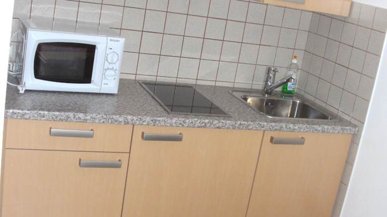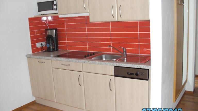 In einigen Wohneinheiten der Pension Znopp gibt es eine Küchenzeile mit Kühlschrank, Geschirrspüler und Mikrowelle.