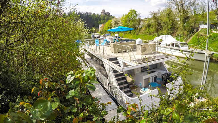 Das Hausboot Schleuseninsel liegt in Lahnstein und bietet einen herrlichen Blick auf den Fluss. In der Umgebung gibt es zahlreiche Sehenswürdigkeiten wie das Theater Koblenz und die Rhein-Mosel-Halle, die jeweils 9,1 km entfernt sind. Das Kurfürstliche Schloss Koblenz erreichen Sie nach 8,8 km. Für Einkaufsmöglichkeiten und weitere Unterhaltungsmöglichkeiten können Sie das Löhr-Center besuchen, das 9,4 km entfernt liegt.