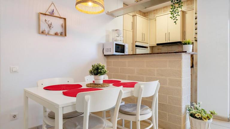 Die Ferienwohnung verfügt über zwei Schlafzimmer, ein Wohnzimmer, ein Badezimmer mit Dusche sowie eine gut ausgestattete Küche mit Kühlschrank und Mikrowelle. Besonders hervorzuheben ist der Balkon mit Meerblick sowie die Terrasse. Zur Ausstattung gehören weiterhin ein Flachbild-TV sowie die Bereitstellung von Handtüchern und Bettwäsche.