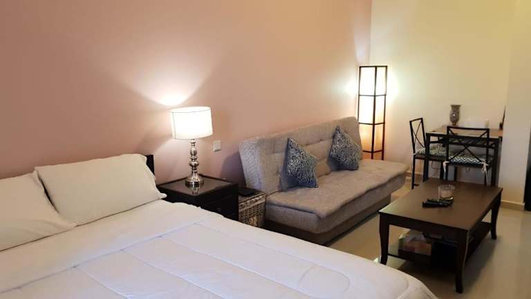 Das Studio Apartment @Al Hamra Royal Breeze in Ras al Khaimah bietet Ihnen einen entspannten Aufenthalt mit eigenem Strandbereich und Außenpool. Die moderne Ausstattung des Apartments umfasst einen gemütlichen Sitzbereich, eine voll ausgestattete Küche und einen Flachbild-Kabel-TV. Zudem steht Ihnen ein Whirlpool im Badezimmer zur Verfügung. Das Apartmentgebäude verfügt über ein Fitnesscenter und in der Umgebung gibt es vielfältige Möglichkeiten zum Wandern und zur Anmietung eines Autos. Der Wasserpark Ice Land ist ebenfalls in der Nähe.