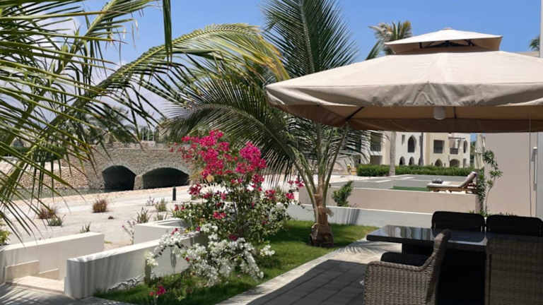 Die Villa Palm Beach befindet sich in einer malerischen Umgebung mit Blick auf den Fluss. Sie liegt etwa 28 km von der beeindruckenden Sultan-Qabus-Moschee entfernt und nur 26 km vom Wadi Ain Sahalnoot. Die Lage bietet Ihnen die Möglichkeit, die Schönheit der Natur zu erkunden und gleichzeitig die Nähe zu wichtigen Sehenswürdigkeiten zu genießen. Der Flughafen Salalah ist nur 25 km entfernt und bietet eine bequeme Anreisemöglichkeit.