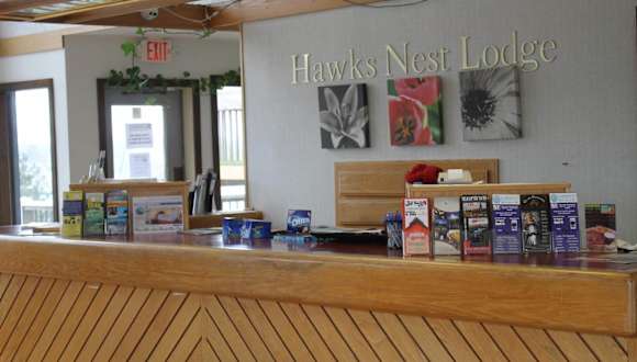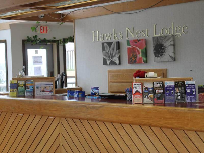 Die Zimmer in der Hawk's Nest Lodge sind mit Kabel-TV ausgestattet. Ausgewählte Zimmer bieten zusätzlich einen kleinen Kühlschrank und eine Mikrowelle sowie eine Aussicht auf den umliegenden See. Alle Zimmer sind klimatisiert und Nichtraucherzimmer stehen zur Verfügung.