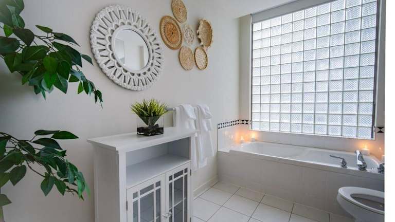 Die Ferienwohnung umfasst zwei Schlafzimmer, ein Wohnzimmer und eine voll ausgestattete Küche mit Kühlschrank. Handtücher und Bettwäsche werden zur Verfügung gestellt. Es gibt zwei Badezimmer, die mit einem Whirlpool ausgestattet sind.