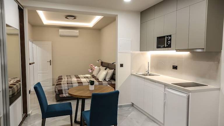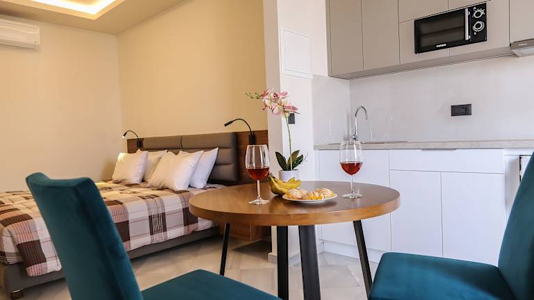 Die Heaven Apartments bieten keine spezifischen Sport- und Freizeiteinrichtungen. Das Highlight des Aufenthalts ist jedoch die Nähe zum Strand von Agia Marina, nur 50 m entfernt. Hier können Sie sich an den goldenen Sandstränden entspannen und das kristallklare Wasser des Kretischen Meeres genießen. Die Gegend bietet auch Möglichkeiten zum Wandern und Erkunden der umliegenden Natur. Entdecken Sie die antike Stadt Falasarna, die eine Autostunde entfernt liegt, und lassen Sie sich von ihrer Geschichte faszinieren.