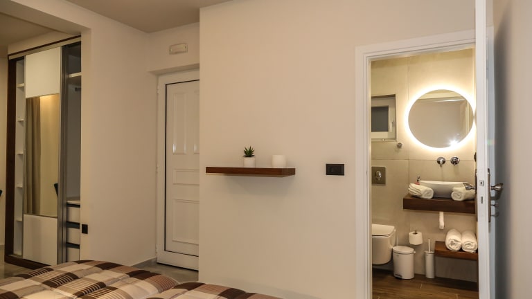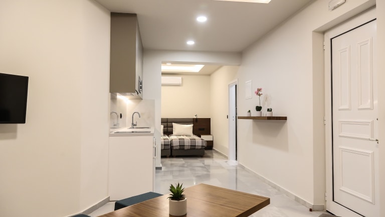 Die Heaven Apartments befinden sich in Agia Marina, nur 50 m vom Strand entfernt. In unmittelbarer Nähe finden Sie eine Vielzahl von Cafés, Tavernen und kleinen Supermärkten. Die Lage ist ideal, um die lebendige Atmosphäre der Gegend zu genießen und gleichzeitig die Annehmlichkeiten in der Nähe zu haben. Die malerische Stadt Chania mit ihrem venezianischen Hafen ist nur 12 km entfernt und der internationale Flughafen Chania erreichen Sie nach 27 km. Für Naturliebhaber ist der goldene Strand und die antike Stadt Falasarna, die jeweils eine Autostunde entfernt sind, ein absolutes Highlight.