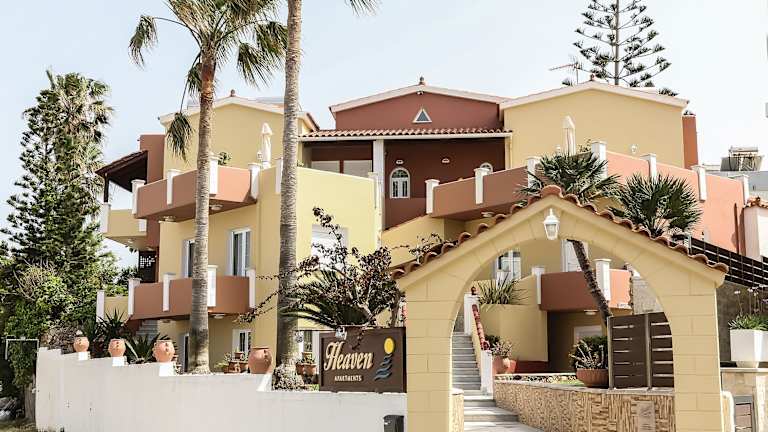 Die Heaven Apartments bieten Studios und Apartments in lebhaften Farben, die eine gemütliche Atmosphäre schaffen. Jede Unterkunft verfügt über eine Küchenzeile, in der Sie Ihre eigenen Mahlzeiten zubereiten können, sowie kostenloses WLAN für Ihre Unterhaltung. Die klimatisierten Zimmer bieten einen eigenen Balkon, von dem aus Sie entweder einen Blick auf den Garten oder das Kretische Meer genießen können. Zur weiteren Ausstattung gehören ein Flachbild-TV, Kochplatten, ein kleiner Kühlschrank und ein Wasserkocher. Ein Sitzbereich und ein eigenes Bad mit einer Dusche sind ebenfalls vorhanden.