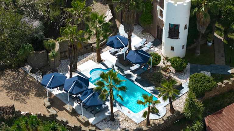 Das Hotel Heinitzburg bietet einen schönen Poolbereich mit Liegestühlen, in dem Sie entspannen und die Sonne genießen können. In der Umgebung können Sie das Wildreservat Daan Viljoen erkunden. WLAN und Parkplätze stehen kostenlos zur Verfügung.
