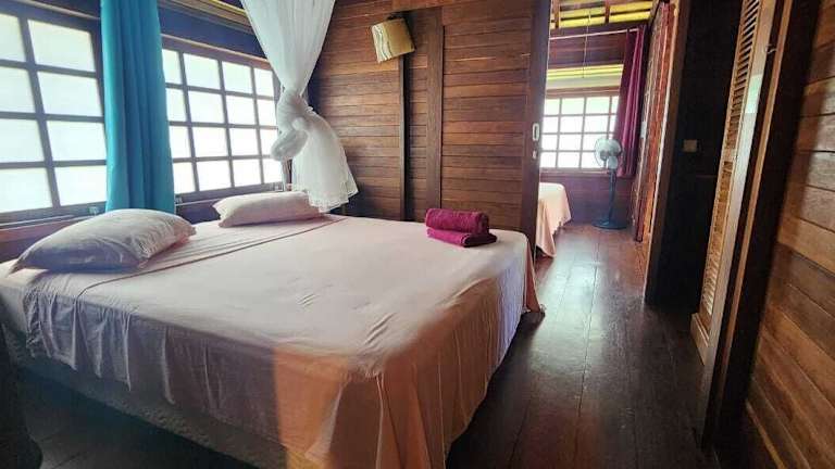 Die Unterkunft verfügt über drei Schlafzimmer, ein Badezimmer mit Dusche, einen Sitzbereich und eine Küche mit Kühlschrank. Zur Ausstattung gehören Handtücher und Bettwäsche. Die Heipoe Lodge bietet auch die Möglichkeit zur Nutzung eines eigenen Pools und kostenfreier Privatparkplätze.