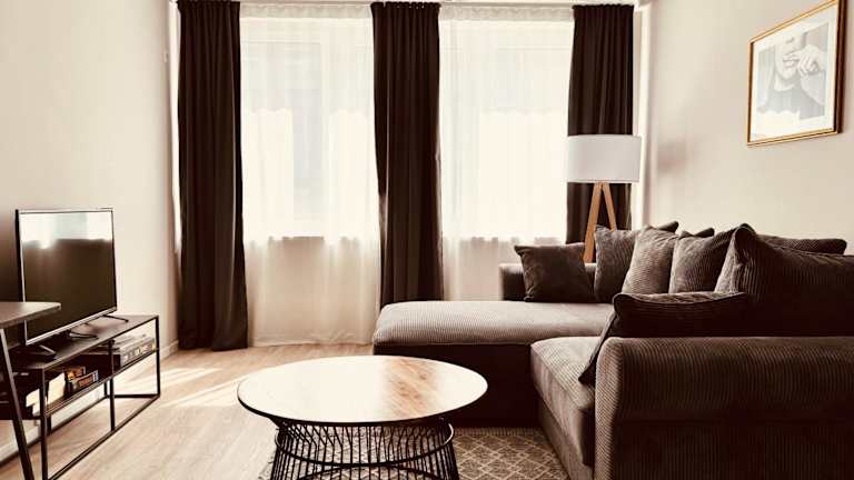 Die Ferienwohnung verfügt über ein Schlafzimmer, ein Wohnzimmer, eine voll ausgestattete Küche mit Kühlschrank und Kaffeemaschine sowie ein Badezimmer mit Dusche und kostenlosen Pflegeprodukten. Handtücher und Bettwäsche sind bereitgestellt. Es werden schallisolierte Zimmer und Heizung angeboten. Die Unterkunft verfügt über einen Aufzug und eine Gepäckaufbewahrung.